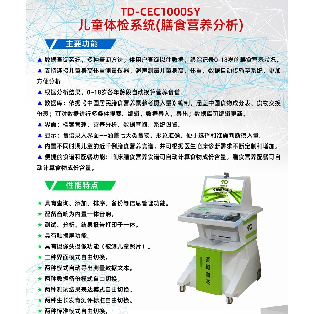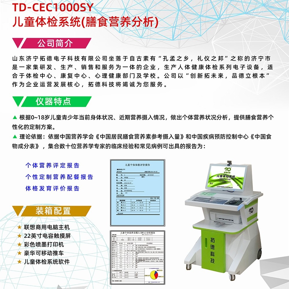 TD-CEC1000SY兒童體檢系統(tǒng)(膳食營(yíng)養(yǎng)分析)